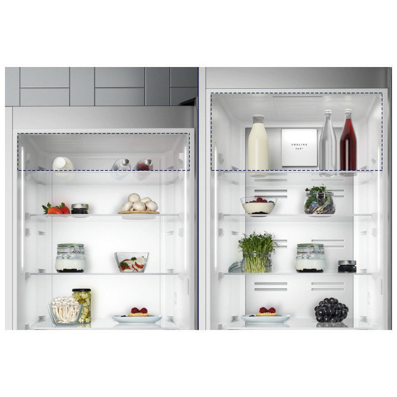 Electrolux samostojeći kombinirani hladnjak, neto kapacitet 461 l. Dimenzije (VxŠxD): 192 x 70 x 71,2 cm. Energetski razred E (2021), vrlo tih samo 43 dB. Automatsko odmrzavanje hladnjaka, položaj šarki na vratima s desne strane uz mogućnost promjene smjera otvaranja vrata. 3 široke, staklene police s okvirom i 2 duboke + 1 polu duboka, prozirna plastična ladica zamrzivača.