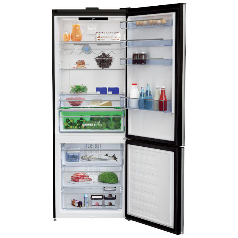Beko kombinirani hladnjak, ukupan neto kapacitet: 514 l. Dimenzije (VxŠxD): 192 x 70 x 74,5 cm. Zahvaljujući svom inovativnom dizajnu, ProSmart ™ Inverter kompresor omogućuje brže hlađenje s manje energije i četiri puta tiši rad od prosječnih kompresora u hladnjacima. HarvestFresh ™ -ova tehnologija u 3 boje oponaša 24-satni ciklus sunca unutar ladice za povrće, čuvajući vitamine dulje.