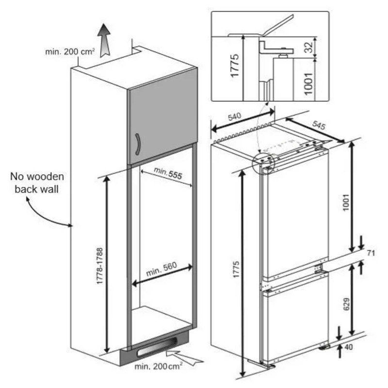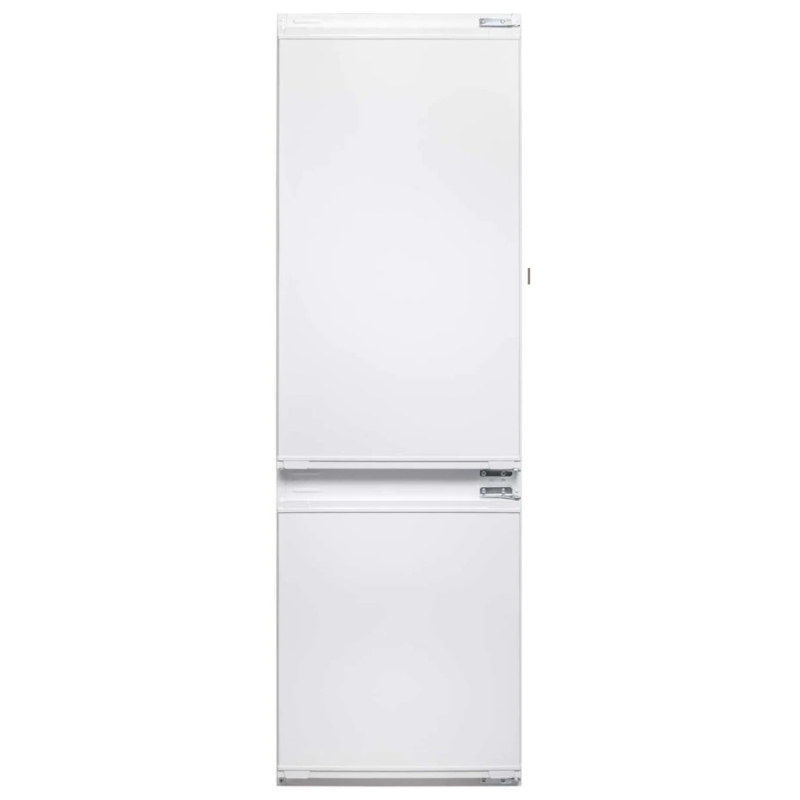 Beko ugradbeni kombinirani hladnjak, ukupan neto kapacitet: 271 l. Dimenzije (VxŠxD): 177,5 x 54 x 54,5 cm. Led Illumination® ima trake s LED diodama na vrhu hladnjaka i za svaku policu na bočnom zidu, tako da možete jasno vidjeti cijeli hladnjak. Zahvaljujući posebnom sustavu isparavanja MinFrost®, nakupljanje leda u zamrzivaču drastično je smanjeno. Podesivi smjer otvaranja vrata kako bi odgovarao rasporedu vaše kuhinje. Police sa sigurnosnim staklom izrađene su od kaljenog stakla i mogu nositi teret do 25 kg.