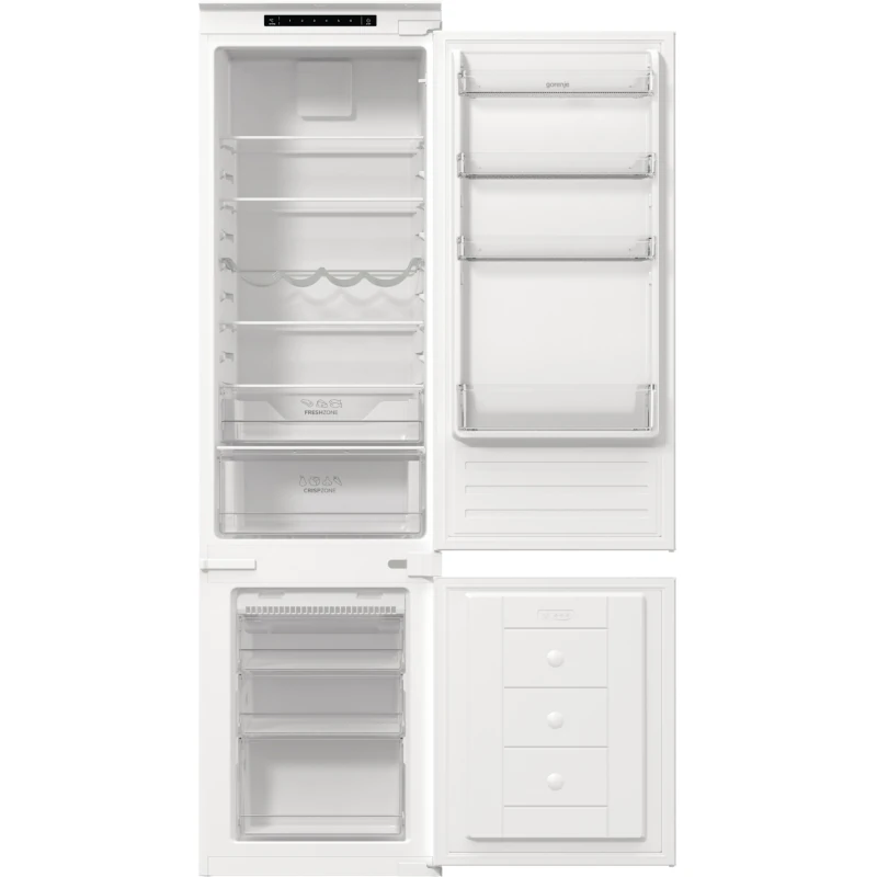 Kombinirani ugradbeni NoFrost hladnjak zapremnine 281 l (hladnjak 225 l, zamrzivač 56 l). Dimenzije (VxŠxD): 193,7 x 54 x 54 cm. Energetski razred: E.