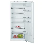 Ugradbeni hladnjak Serie 6, 140 x 56 cm, fiksna šarka. Ukupna neto zapremnina aparata (l): 247 l. VitaFresh ladica: čuva hranu dulje svježom u klimatski kontroliranom prostoru. Police od sigurnosnog stakla: sigurna pohrana hrane zahvaljujući posebno stabilnim policama od stakla otpornog na udarce. LED osvjetljenje: jednakomjerno osvijetli hladnjak za vrijeme cijelog životnog vijeka uređaja. SuperCooling funkcija: namirnice koje ste tek stavili u hladnjak hladi brže i tako čuva već ohlađene namirnice. Polica EasyAccess: izvlačiva staklena polica omogućuje bolji pristup sadržaju vašeg hladnjaka. Energetski razred: E.