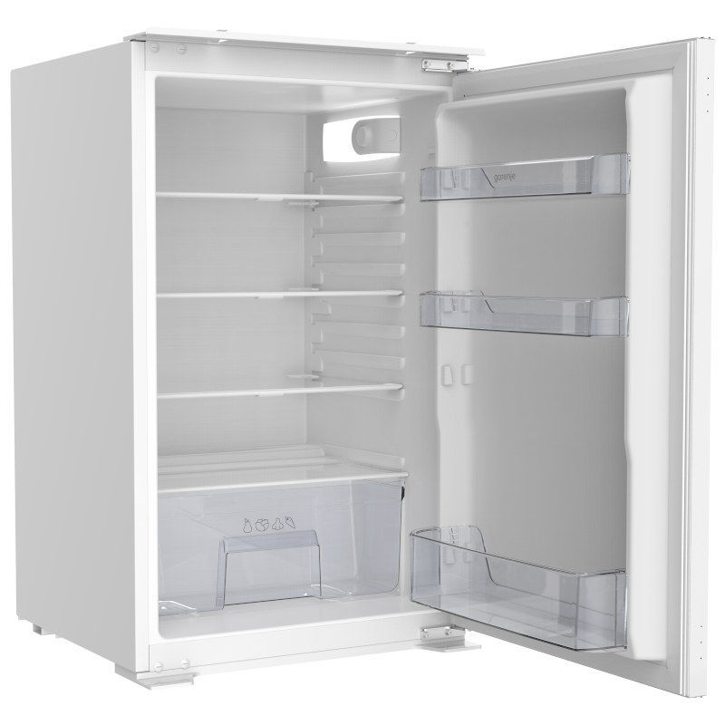 Gorenje ugradbeni hladnjak zapremine 109 l. Dimenzije aparata visina 880, širina 540 i dubina 540 mm. Energetski razred F.