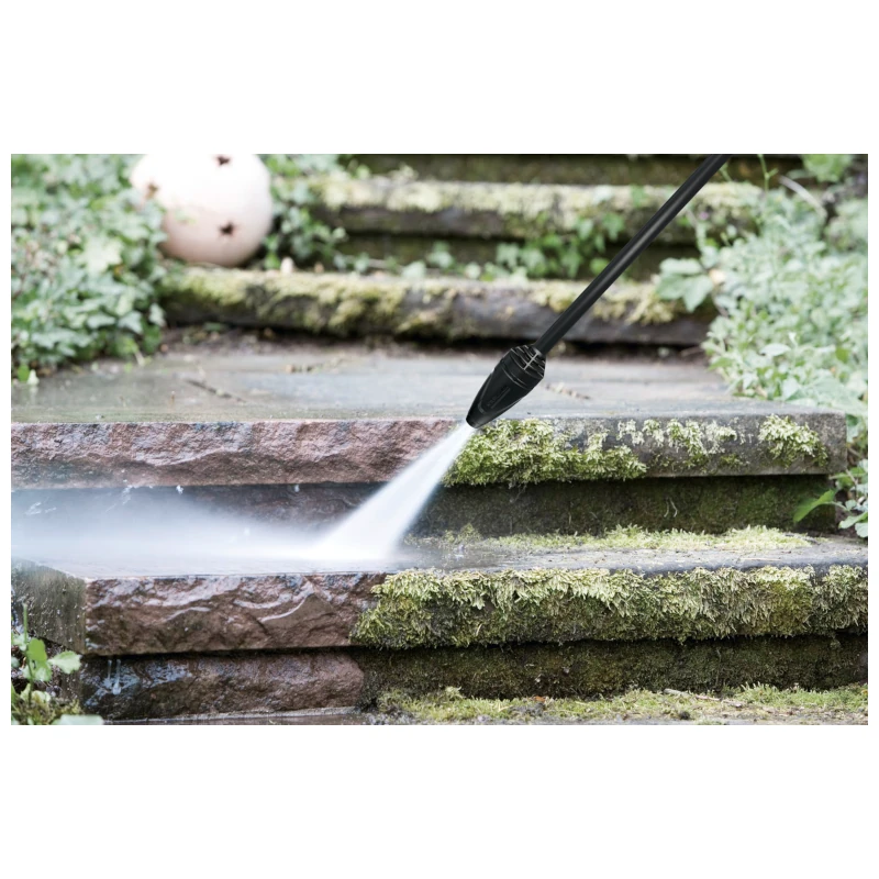 Snažno protiv posebno tvrdokornih onečišćenja: glodalo za nečistoću s rotirajućom mlaznicom Top za sve Kärcher visokotlačne čistače klase K 7. Zbog rotirajućeg točkastog mlaza i velikog površinskog učinka moguće je bez velikog truda također odstraniti i atmosferska onečišćenja, kao na površinama obraslima mahovinom ili trošnim površinama.