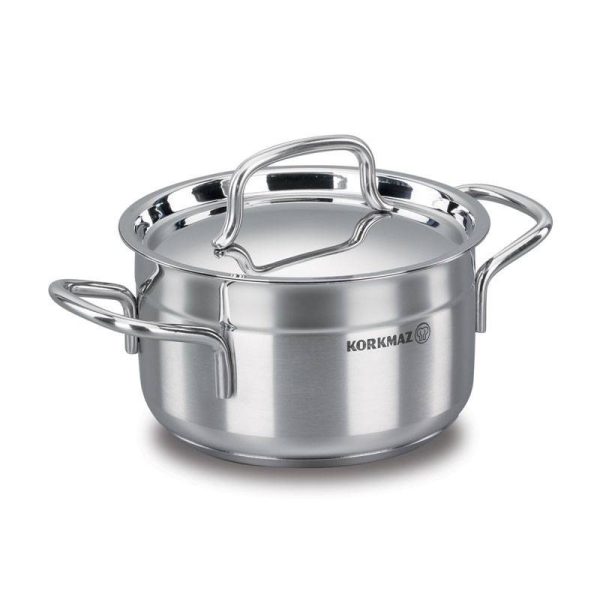 Vrhunsko kvalitetno posuđe svjetskog proizvođača Korkmaz. Primjena novih tehnologija u izradi posuđa, omogućava pripremu zdravih namirnica, energetsku uštedu i kraće vrijeme kuhanja što je u skladu s modernim i ubrzanim načinom života.Glavne karakteristike materijala u izradi Korkmaz posuđa su:Dno velike debljine pogodno za indukcijuNehrđajući čelik 18/10Brand: KorkmazDimenzije: 14×7 cmPogodno za indukciju: DaPerivo u perilici posuđa: DaTip proizvoda: Lonac