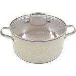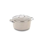 Dimenzije : 20×10,5 cm Kapacitet: 3 Litre PTFE premaz vulkanskog izgleda s izvrsnim neprianjajućim svojstvom na unutarnjim površinama Dodatni otpor i otpornost na ogrebotine Ekološki prihvatljiva tehnologija proizvodnje Lako se čisti Izdržljiv je do 70.000 pranja. Pruža maksimalnu uštedu vremena i energije zahvaljujući osnovnom sustavu Solar Base koji pruža najveći prijenos topline na svim vrstama štednjaka, uključujući indukcijske Kuhanje bez otrovnih plinova (bez PFOA, kadija ili olova) Svojom visokom toplinskom vodljivošću pruža visoke performanse kuhanja čak i pri niskoj vrućini. Priprema ukusnija jela s manje ulja od ostalih vrsta posuđa. Proizvodi se od materijala koji se mogu reciklirati. Sirovina vulkanske prevlake proizvodi se u njemačkom gradu Weilburger u Njemačkoj. Granita, proizvedena od recikliranog, potpuno prirodnog materijala, s ekološki prihvatljivom tehnologijom, priprema ukusna jela od vrlo malo ulja s izuzetno otpornim PTFE premazom vulkanskog izgleda i silikonskim vanjskim premazom otpornim na visoke temperature.