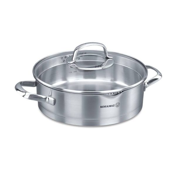 Vrhunsko kvalitetno posuđe svjetskog proizvođača Korkmaz. Primjena novih tehnologija u izradi posuđa, omogućava pripremu zdravih namirnica, energetsku uštedu i kraće vrijeme kuhanja što je u skladu s modernim i ubrzanim načinom života.Glavne karakteristike materijala u izradi Korkmaz posuđa su:Dno velike debljine pogodno za indukcijuNehrđajući čelik 18/10Dimenzije: 16cm x 10cm / 2 litre Ručke od bakelita Pogodno za indukciju: DaPerivo u perilici posuđa: Da