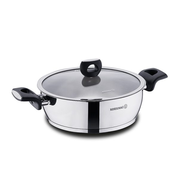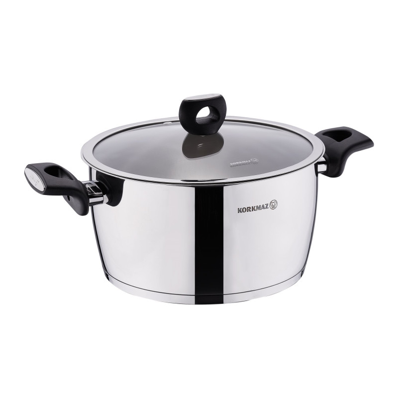 Vrhunsko kvalitetno posuđe svjetskog proizvođača Korkmaz. Primjena novih tehnologija u izradi posuđa, omogućava pripremu zdravih namirnica, energetsku uštedu i kraće vrijeme kuhanja što je u skladu s modernim i ubrzanim načinom života.Glavne karakteristike materijala u izradi Korkmaz posuđa su:Dno velike debljine pogodno za indukcijuNehrđajući čelik 18/10Dimenzije: 24cm x 13 cm / 5,5 litre Ručke od bakelita Pogodno za indukciju: DaPerivo u perilici posuđa: Da