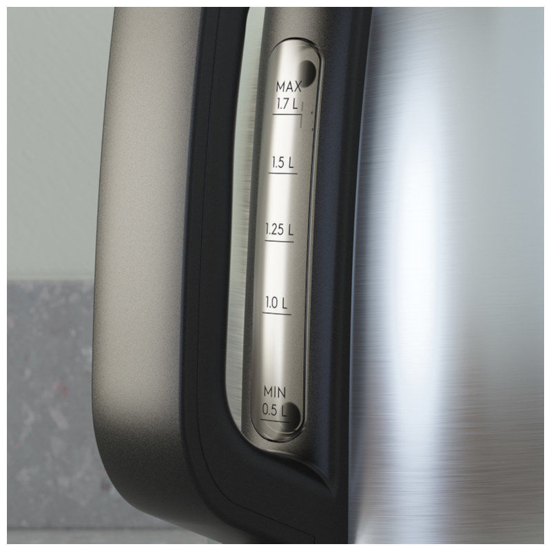 Kuhalo vode s kućištem izrađenim od nehrđajućeg čelika, 1850 W, zapremnina spremnika: 1,7 l, otvaranje poklopca s jednom rukom, odvojivi filter za kamenac, zaštita od pregrijavanja, indikator napunjenosti, spremnik kabla.