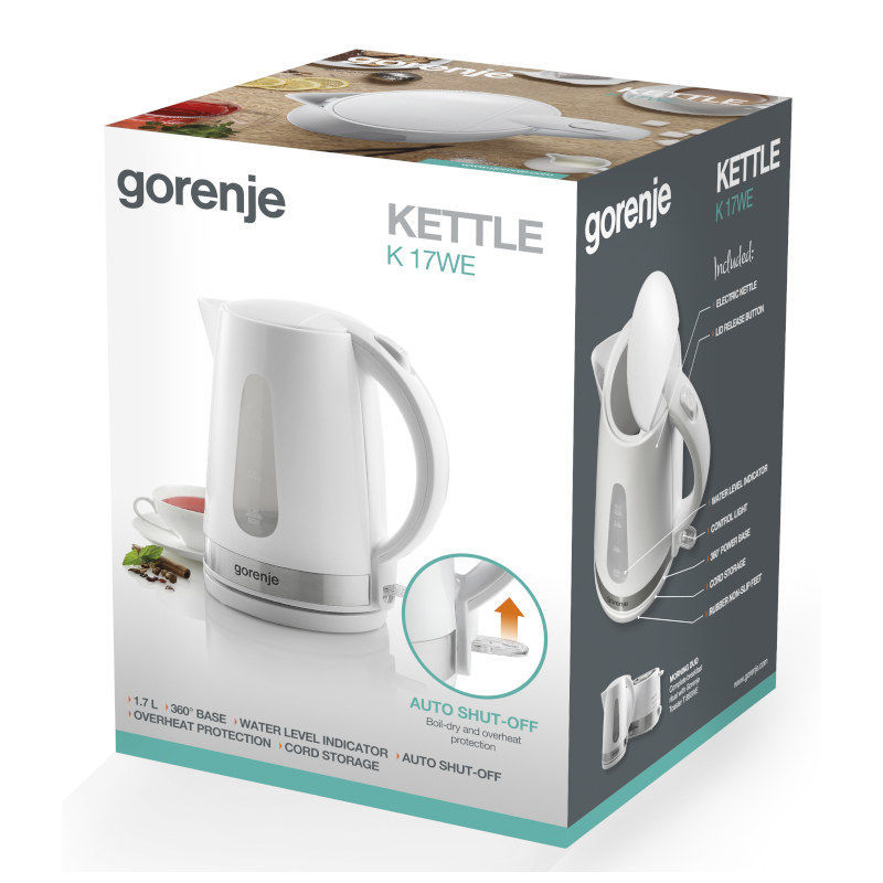 Gorenje kuhalo vode, zapremina spremnika: 1.7 l, boja: bijela. Priključna snaga: 2200 W. Indikator razine vode za dobar pregled. Automatsko isključivanje kod točke vrenja. Zaštita od isušivanja i pregrijavanja za sigurnu uporabu i dulji životni vijek aparata.