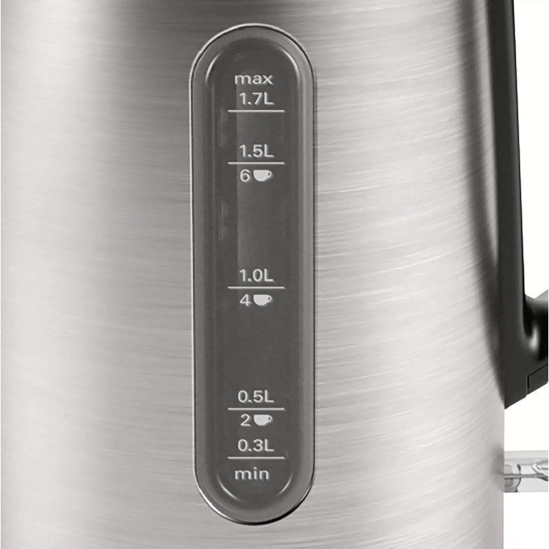 Pokazatelj za šalice: pomaže vam uštedjeti na energiji i vremenu zagrijavanjem samo potrebne količine vode. Optimalan grlić: osmišljen za jednostavno točenje čaja bez prolijevanja i prskanja. Ergonomski rad: jednostavno otvaranje poklopca samo dodirom gumba. Lako čitljivo mjerilo vode s obje strane: vidljivost količine vode s obje strane čajnika – praktično za ljevake i dešnjake. Trostruka sigurnosna funkcija: Automatsko isključivanje, zaštita od pregrijavanja i kipljenja te isključivanja kod podizanja s podnožja.