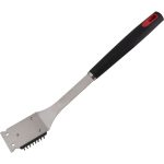 Četka za roštilj strugač od nehrđajućeg čelika Omekšana ručka za udoban rad. Kraj ručke ima kuku za vješanje. Materijal: čelik, nehrđajući čelik, plastika Boja: srebro / crna Dimenzije: duljina 39 cm