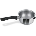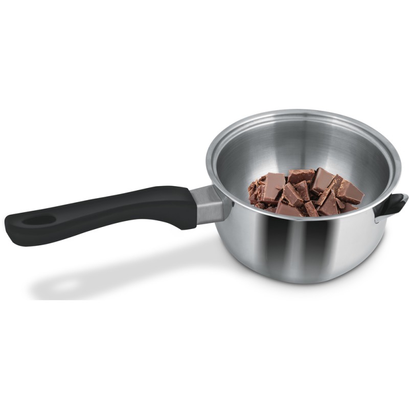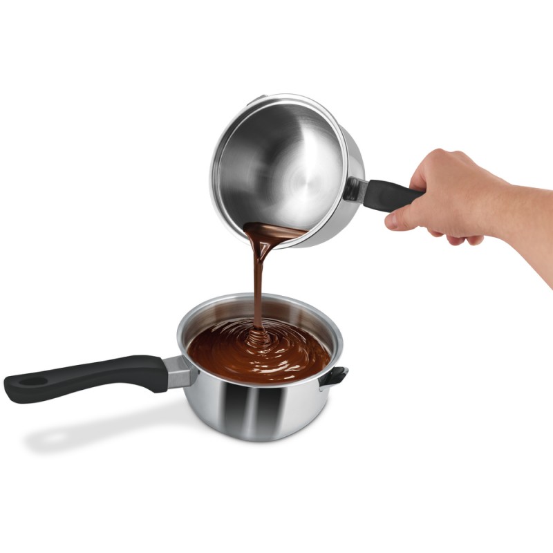 POSUDA ZA UMAKE S DVOSTRUKOM STIJENKOM Materijal čelik Promjer 15 cm Kapacitet 1 l Ova posuda za umake izrađena je od kvalitetnog dvoslojnog čelika koji čuva toplinu radi njezinog brzog prijenosa i uštede energije. Posuda za umake opremljena je dvostrukim dnom, mekom ručkom s prstenom za vješanje, litarskom skalom i otvorom za ulijevanje vode radi sprječavanja zagorijevanja mlijeka, umaka i čokolade. Jednostavno održavanje i čišćenje.