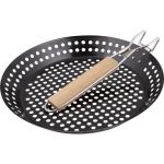 Za svakog ljubitelja odreska i roštilja, lagana posuda zaroštilj od ugljičnog čelika i sklopiva ručka.Namijenjeni su za roštiljanje priloga, povrća, ali i mesa Rupe poboljšavaju protok vrućeg zraka i tako ubrzavaju vrijeme pripreme Materijal: ugljični čelik, drvoBoja: crnaDimenzije: fi 30 cm