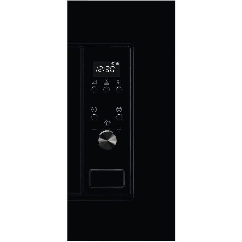 Electrolux ugradbena mikrovalna pećnica snage 700 W sa elektro-mehaničkim upravljanjem. 5 razina snage, crna boja. Signal koji označava završetka ciklusa rada. LED zaslon.