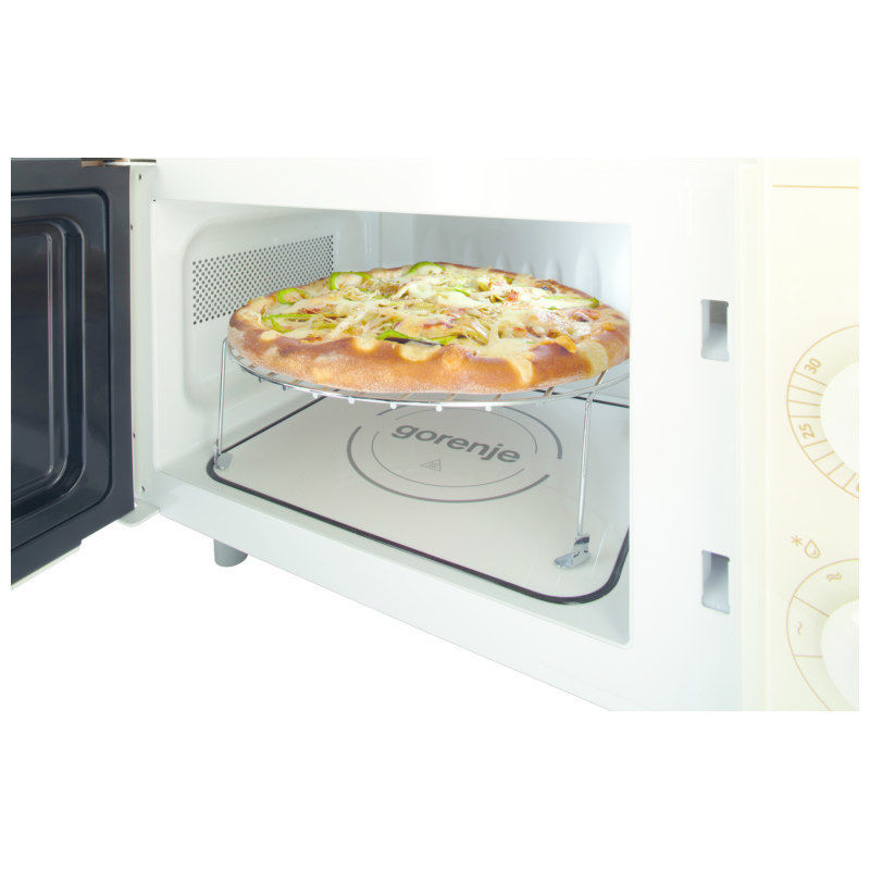 Samostojeća mikrovalna pećnica Gorenje MO4250CLI retro izgleda, ima priključnu snagu 1080 W i dvije mogućnosti zagrijavanja: mikrovalove i roštilj. Volumen pećnice: 20 l, snaga mikrovalova: 700 W, snaga grilla: 800 W.