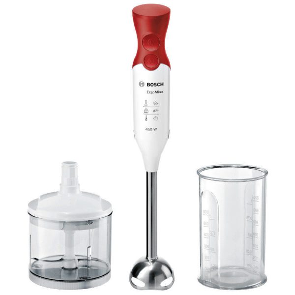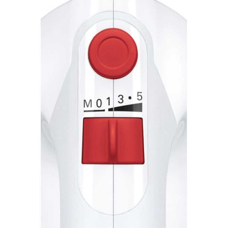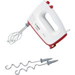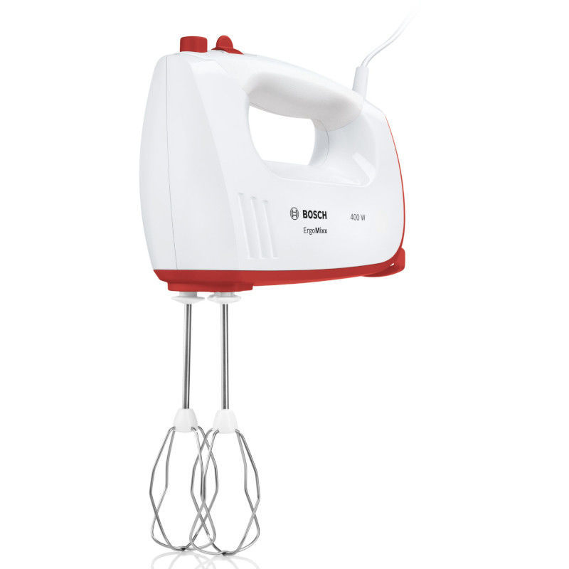 Bosch ručni mikser ErgoMixx, 400 W, boja: bijela. Turbo metlice i kuke za gnječenje od nehrđajućeg čelika: zajamčite savršeno miješanje, tučenje i gnječenje. 5 brzina plus funkcija turbo: precizan nadzor brzina za svaki recept. Jednostavan gumb za izbacivanje: otpuštanje pribora dodirom na gumb za zamjenu i čišćenje.