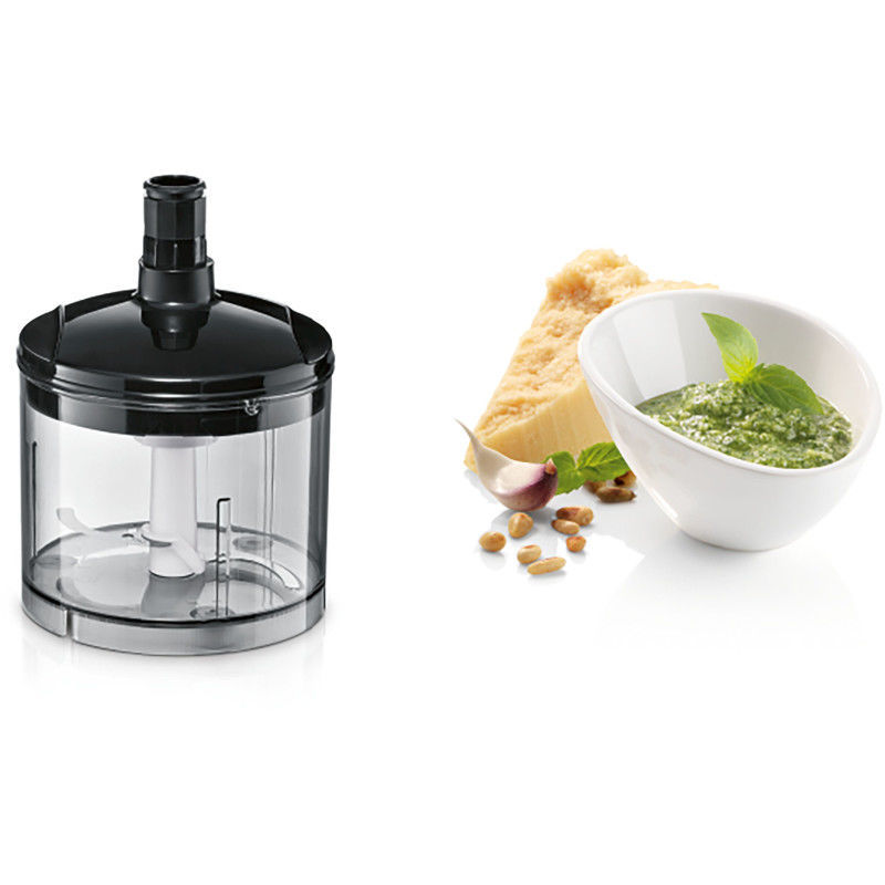 Štapni mikser ErgoMixx, snaga: 1000 W, boja: crna, anthracite. Uključeni sustav vakuumske pohrane: uklanja zrak iz posebnog vakuumskog dodatnog pribora i vašu hranu dulje vremena održava svježom. Ergonomsko i jednostavno rukovanje: lagano kućište s drškom mekanom na dodir za udobno i sigurno držanje. QuattroBlade: jamči optimalno rezanje i fine rezultate miješanja – s funkcijom AntiSplash. Promjenjiva brzina: 12 brzina, plus funkcija turbo za savršenu gustoću svakog recepta.