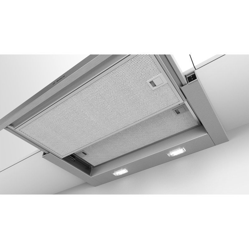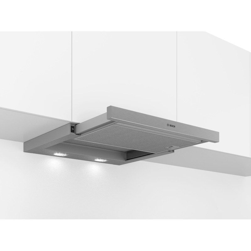 Teleskopska kuhinjska napa, širina: 60 cm, nehrđajući čelik. Energetski razred D. Maksimalni protok zraka kod ispušnog zraka: 389 m³/h, razina buke min./maks. normalna razina: 59/67 dB. Razina filtracije masnoće: filtrira više od 85% masnoće iz vašeg kuhinjskog zraka. Osvjetljenje: štedljiva rasvjeta osigurava bijelo i dobro osvjetljenje ploče. S napom se zrak pročišćuje putem filtra za masnoću i potom izbacuje van, što jamči optimalnu kvalitetu kuhinjskog zraka.
