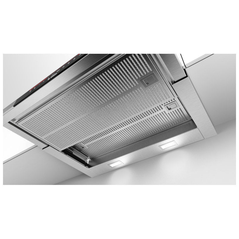 Teleskopska kuhinjska napa, 59 cm, nehrđajući čelik. Teleskopska napa: jedva vidljiva integrirana u zidni elemenat, ovo osigurava jasan dizajn kuhinje. Posebno tih rad: kuhinjska napa visokih performansi s minimalnom razinom buke. Razina filtracije masnoće: filtrira više od 85% masnoće iz vašeg kuhinjskog zraka. EcoSilence Drive™: snažan motor za kuhinjske nape koji štedi energiju. Osvjetljenje: Štedljiva rasvjeta osigurava bijelo i dobro osvjetljenje ploče. Intenzivan stupanj: još brže i učinkovitije odstrani snažne mirise prilikom kuhanja. Energetski razred: A.