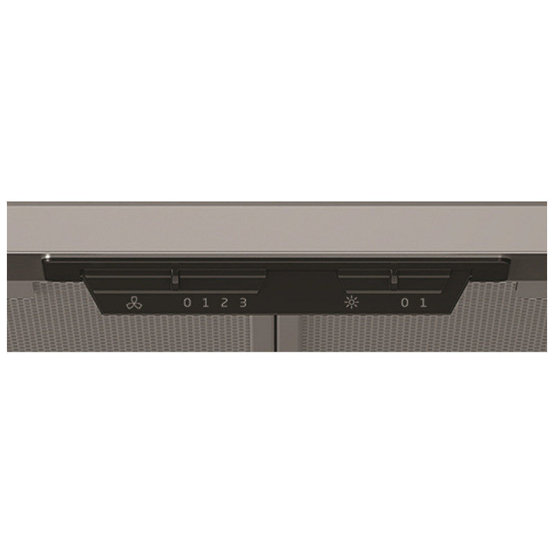 Kaminska napa, razina buke: 68 dBA, Maksimalni kapacitet ventilacije: 395 m³/h, dimenzije (VxŠxD): 19,7×59,8×45 cm, energetski razred: D.
