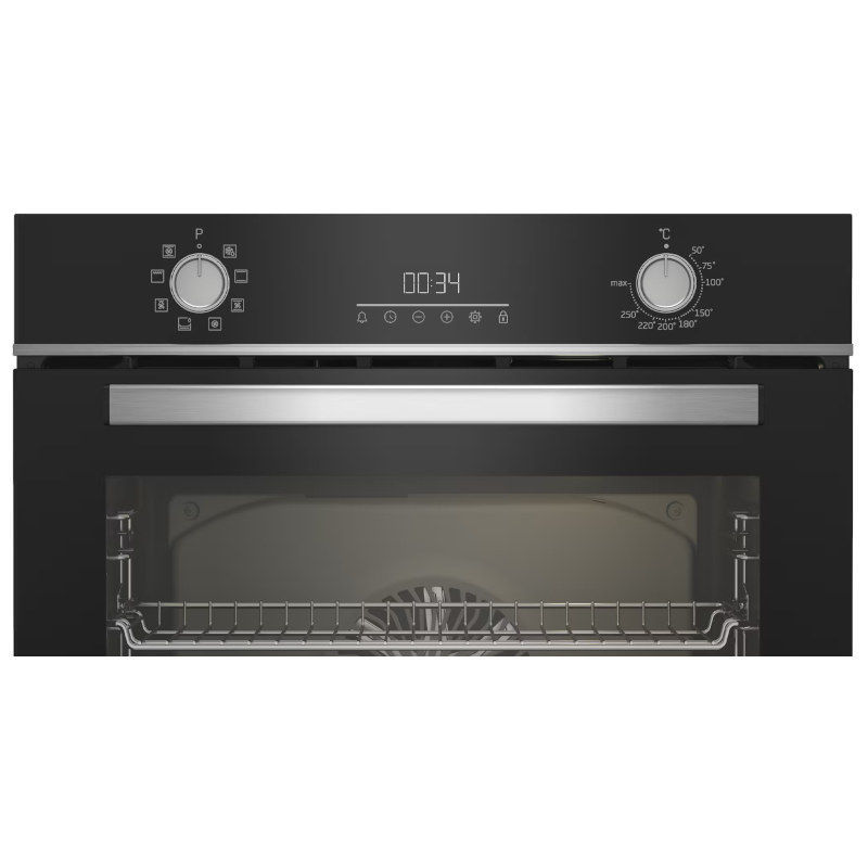 Beko pećnica ugradbena zapremine: 72 l, dimenzija (VxŠxD):59,5×59,4×56,7 cm, mase: 29,7 kg. Halogena rasvjeta pomaže vam da vidite cijelu pećnicu, pa kulinarske kreacije možete pratiti sa zatvorenim vratima. Izdržljiva vrata podržavaju opterećenja teška čak 22,5 kg.