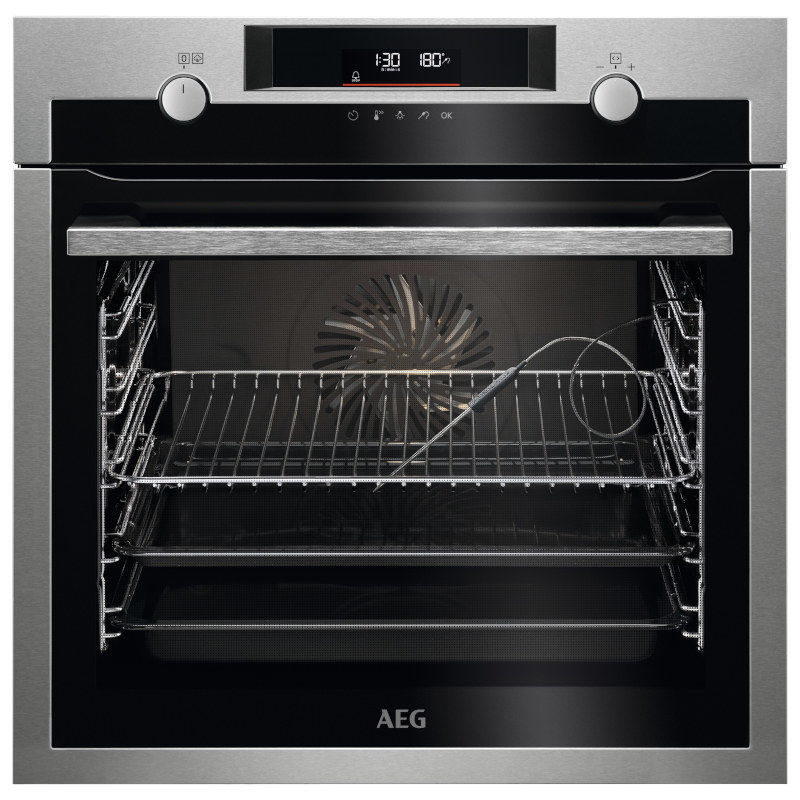 Elektronske funkcije pećnice: 45 variety of pre-set cooking programmes “Assist”, zvučni signal, Alarm/error tones, Automatic safety switch off only oven, podesiva razine zvuka , Catalytic cleaning, Child lock (in off mode), Cooking with Duration, Cooking with End Time and Duration, odbrojavanje vremena, Delayed start (Time delay), Demo mode with code, Display Brightness adjustable (ON status), svjetlosni prekidač za vrata, elektronska regulacije temperature, odabir brzog zagrijavanja, sonda za meso, automatsko isključivanje sonde za meso, indikator toplne jezgre pomoću sonde, Food sensor end action adjustable, Function lock (in running mode), Key tones menu with deactivation, Menu non-connected, minutni podsjetnik, prijedlog temperature, vrijeme u danu, Oven light on/off selectable (menu + direct access button), Real temperature indication (°C), indikator rezidualne topline, Service info