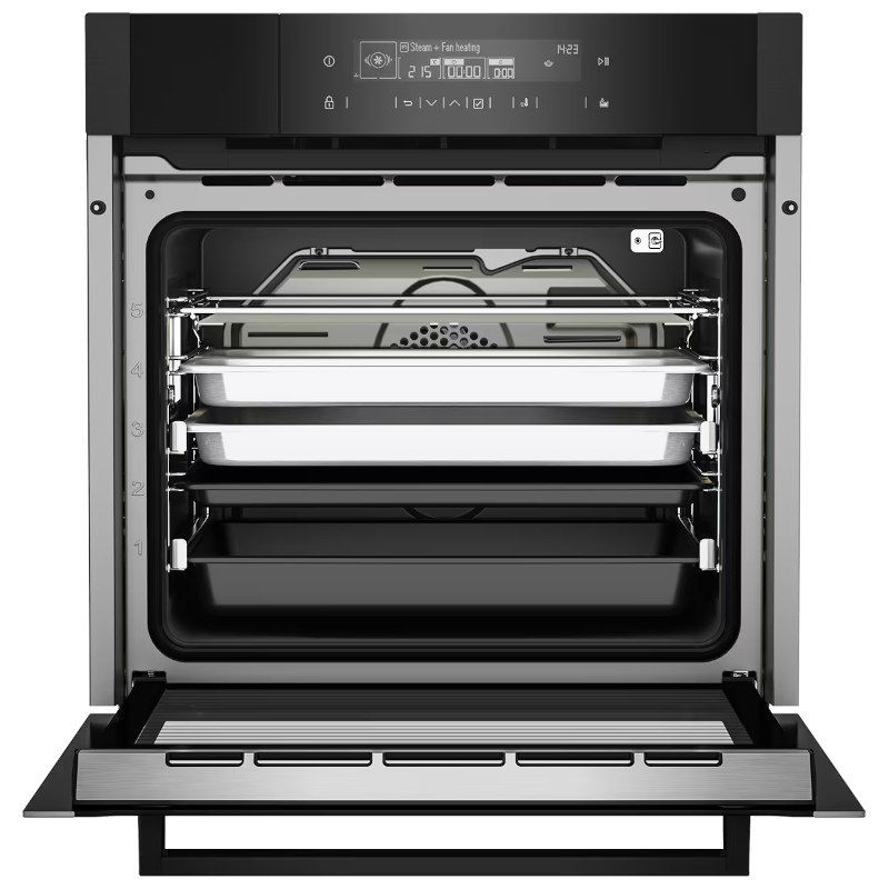 Beko pećnica ugradbena zapremine: 71 l, dimezije (VxŠxD): 59,5×59,4×56,7 cm, mase: 44,4 kg. Steamaid ™ – Mekše i hrskavije pečenje. PizzaPro ™ – Pizza kao iz pizzerije za 5 min. CookSense® – Sonda za meso za savršeno, srednje ili dobro pečeno meso. Halogena rasvjeta – Jasan pogled na ono što se događa unutra. Izdržljiva vrata – Čvrsta vrata za nošenje teškog posuđa i pribora za kuhanje.