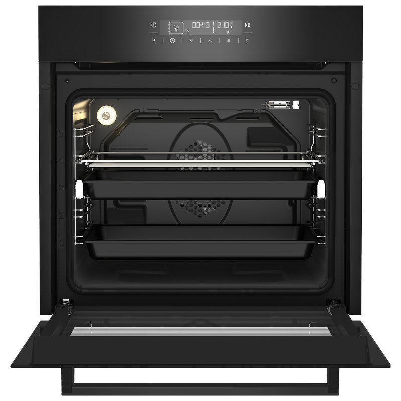 Beko pećnica ugradbena zapremine: 71 l, dimezije (VxŠxD): 59,5×59,4×56,7 cm, mase: 43,2 kg. Zahvaljujući PizzaPro dostiže temperature do 310 ⁰C, dobit ćete kvalitetnu pizzu za samo pet minuta. Zaboravite sve. Pirolitičko samočišćenje zagrijava pećnicu na 480 ° C, ostatke hrane i masti pretvara u pepeo, tako da ih možete bez napora obrisati. Halogena rasvjeta pomaže vam da vidite cijelu pećnicu, pa kulinarske kreacije možete pratiti sa zatvorenim vratima. Izdržljiva vrata podržavaju opterećenja teška čak 22,5 kg.