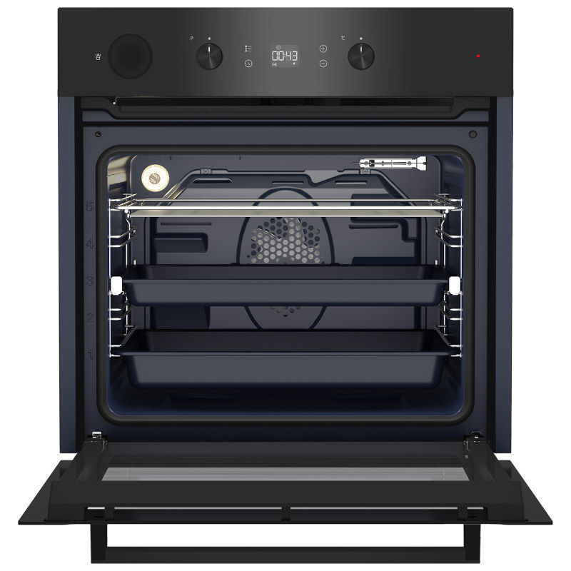 Beko pećnica ugradbena zapremine: 71 l, dimezije (VxŠxD): 59,5×59,4×56,7 cm, mase: 41,2 kg. SteamAid ™ ubrizgava paru u šupljinu pećnice tijekom kuhanja kako bi peciva i kruh postali hrskavi izvana, a mekani i pahuljasti iznutra. Pirolitičko samočišćenje zagrijava pećnicu na 480 ° C, ostatke hrane i masti pretvara u pepeo, tako da ih možete bez napora obrisati. Halogena rasvjeta pomaže vam da vidite cijelu pećnicu, pa kulinarske kreacije možete pratiti sa zatvorenim vratima.