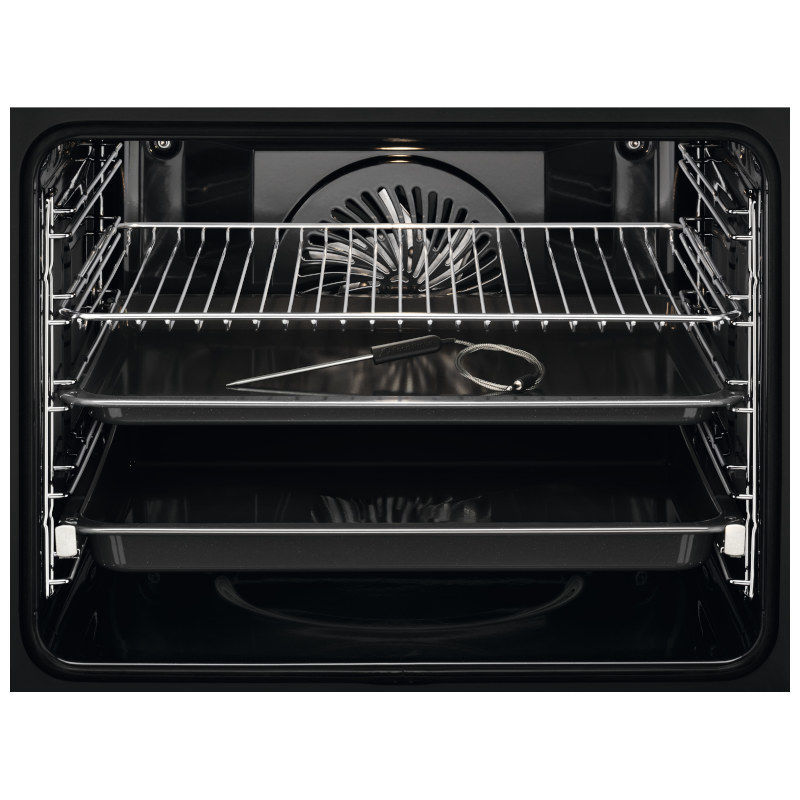 Funkcije pečenja: donji grijač, ventilator + osvjetljenje pećnice, roštilj, roštilj + donji grijač, roštilj + donji grijač + ventilator, roštilj + ventilator, kružni grijač + donji grijač + ventilator, kružni grijač + ventilator