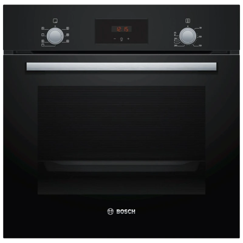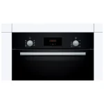 Bosch pećnica Serie 2, 60 x 60 cm, crna boja. Ugradbena pećnica s 3D vrućim zrakom: postignite savršene rezultate pečenja na najviše tri razine istovremeno. Upravljanje LED zaslonom: jednostavan za uporabu zahvaljujući vremenskim funkcijama.