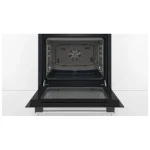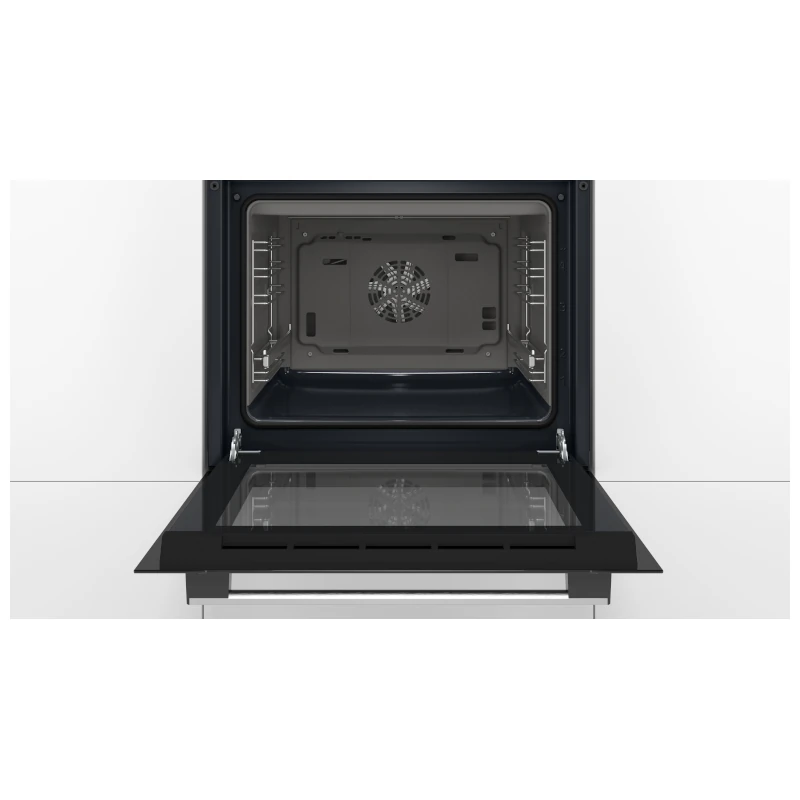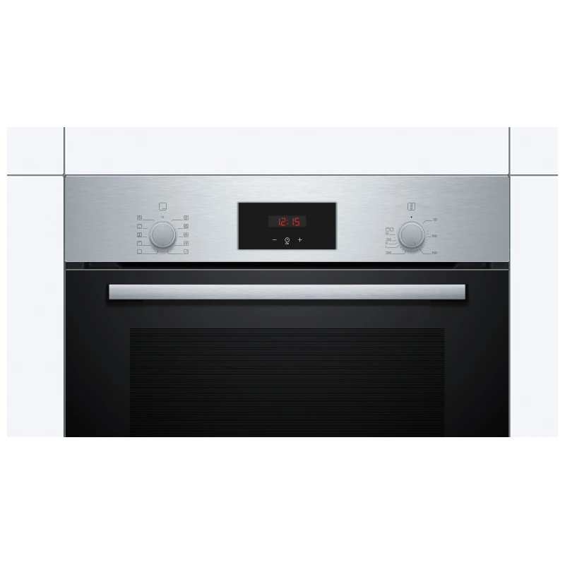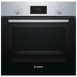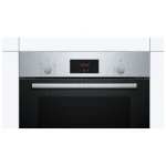 Bosch pećnica Serie 2, 60 x 60 cm, nehrđajući čelik. Ugradbena pećnica s 3D vrućim zrakom: postignite savršene rezultate pečenja na najviše tri razine istovremeno. 3D Hotair: jednoliko raspoređuje toplinu na do tri razine. Upravljanje LED zaslonom: jednostavan za uporabu zahvaljujući vremenskim funkcijama. Skočni upravljački gumbi: omogućite jednostavno čišćenje prednje strane pećnice i dajte joj elegantan izgled. EcoClean Direct: jednostavno čišćenje zahvaljujući premazu koji razgrađuje masnoću tijekom pečenja. Pomoć pri čišćenju: manje napora pri čišćenju zahvaljujući novoj mogućnosti čišćenja koja se može upotrebljavati za čišćenje laganih zaprljanja. Energetski razred: A.