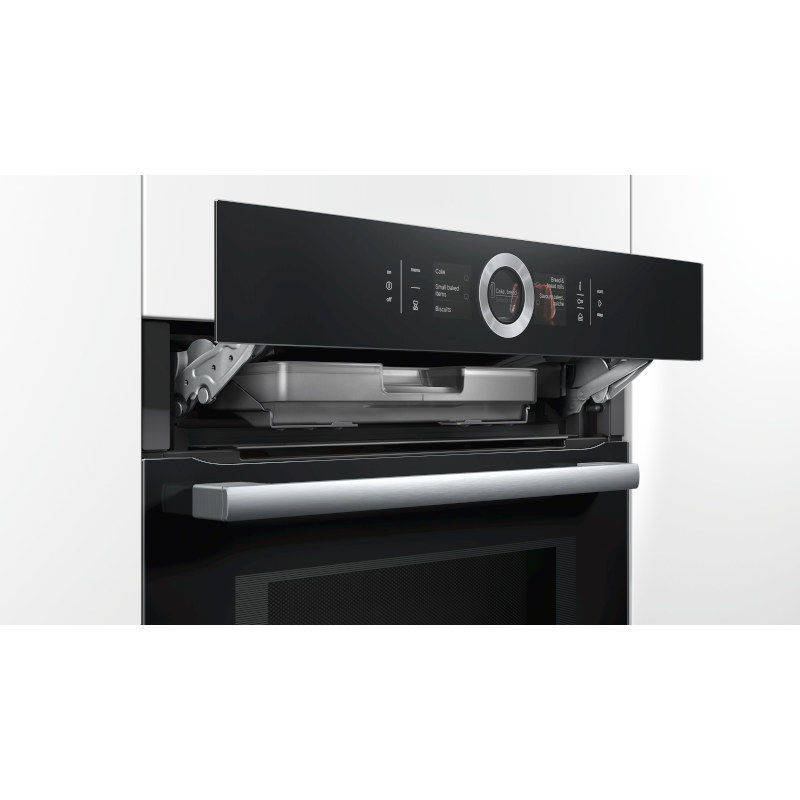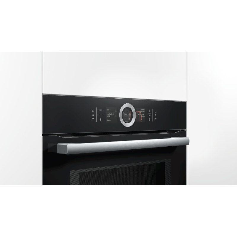 Serie 8, Pećnica s funkcijom dodavanja pare i mikrovalova, 60 x 60 cm, Crna. PerfectBake: jednostavan put do savršeno ispečenog kruha i kolača. PerfectRoast: Maksimalna točnost mjerenja za savršeno pečenje. Added Steam: vaša će jela biti hrskava izvana i sočna iznutra. Funkcija mikrovalne pećnice: za brzo zagrijavanje ili brzo kuhanje u kombinaciji s toplim zrakom. 4D Hotair: jednolika distribucija topline, za savršene rezultate na svakoj razini.