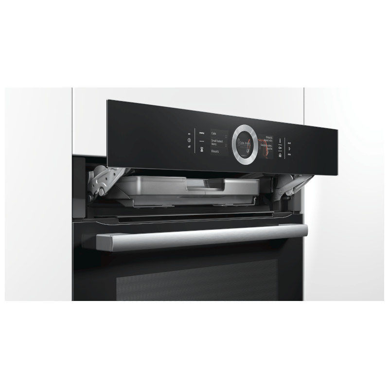 BOSCH ugradbena pećnica s funkcijom funkcijom pare: zdraviju pripremu hrane. Funkcija dodavanja pare: dodavanjem pare hrana postaje hrskava izvana, a sočna iznutra. Assist: automatska postavka za optimalnu vrstu topline, temperature i vremena za brojna jela. Upravljanje TFT zaslonom na dodir: jednostavan za korištenje zahvaljujući gumbu za upravljanje s punim tekstom i simbolima. Širina 60 cm visoka kombinirana parna pećnica: savršeno pečenje, pečenje vlažnom parom i nježno kuhanje na pari.