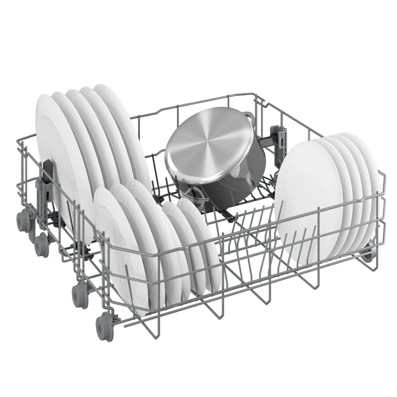 Samostojeća perilica posuđa kapaciteta: 14 kompleta posuđa i 6 programa pranja. Dimenzije (VxŠxD): 85 x 59,8 x 60 cm. Veoma tiha: 43 dB(A). Energetski razred: E.