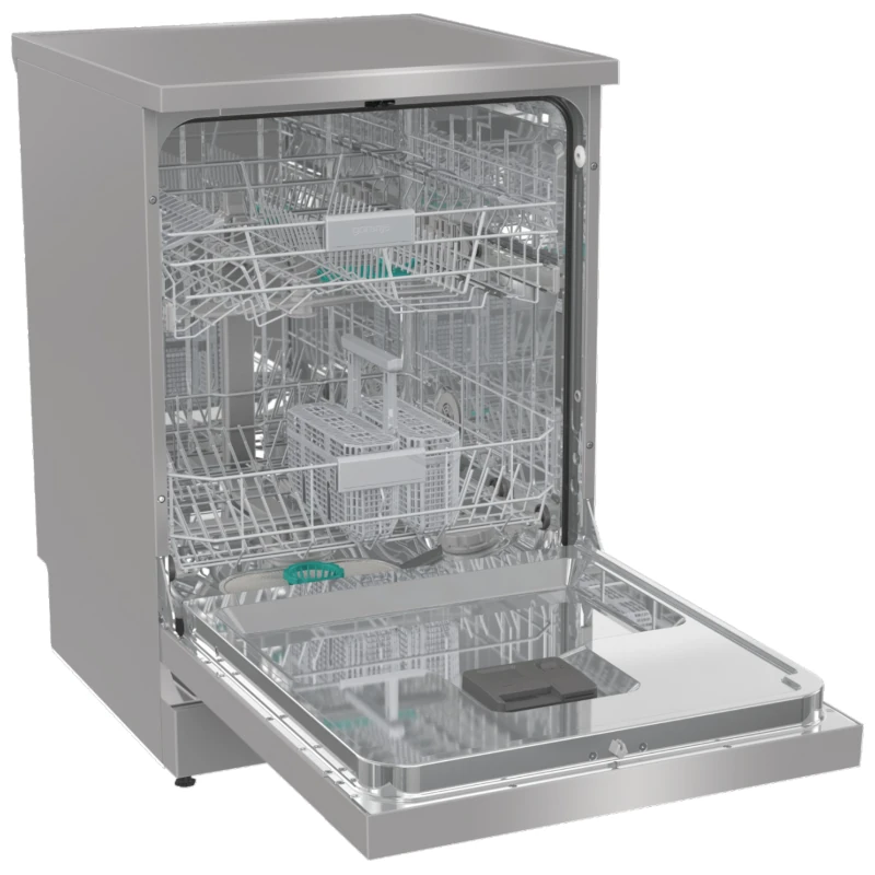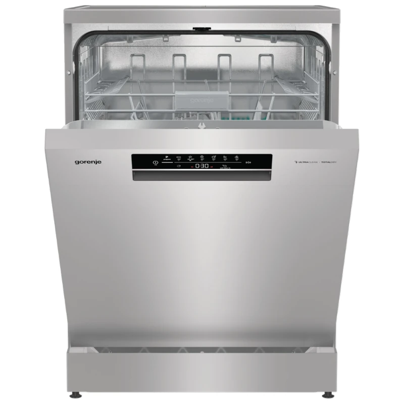 Gorenje samostojeća perilica posuđa Advanced Line. Kapacitet punjenja (broj servisa): 14 komada. Dimenzije (ŠxVxD): 599x846x598 mm. TotalDry – automatsko otvaranje vrata. Energetski razred: D.