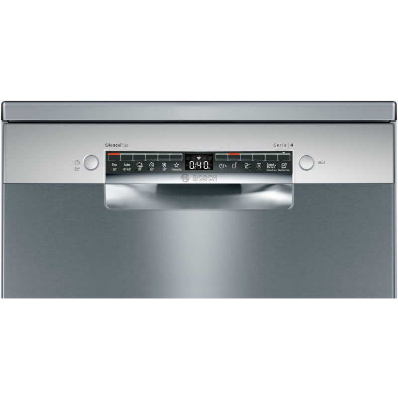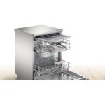 Bosch samostojeća perilica posuđa, 60 cm, Silver inox. Energetski razred D. Perilica ima kapacitet pranja za 13 setova posuđa. Fleksibilno punjenje i pametno daljinsko upravljanje perilicom putem aplikacije Home Connect. ExtraDry: iznimno temeljit način sušenja za posuđe koje se teško suši.