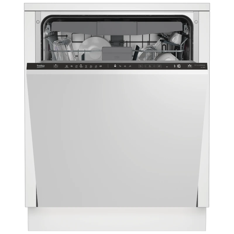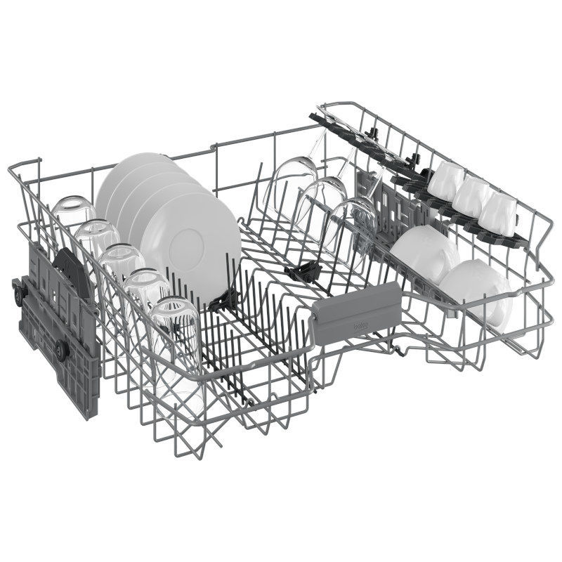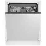 Beko perilica posuđa ugradbena kapaciteta 15 setova posuđa, dimenzije (VxŠxD): 81,8×59,8×55 cm, mase: 38,4 kg. Energetski razred: E.