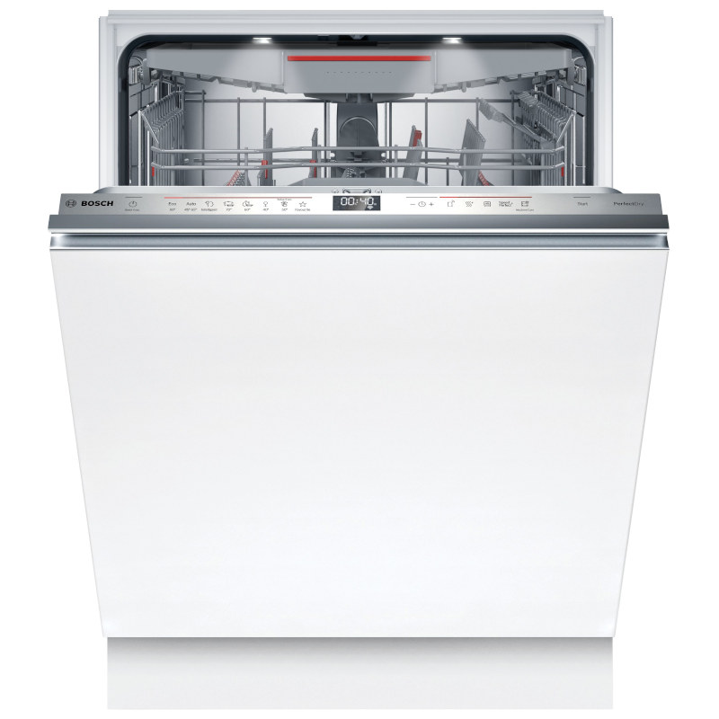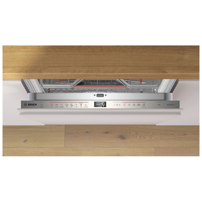 Ugradbena perilica posuđa, Serie 6, 60 cm. Kapacitet pranja: 14 kompleta posuđa. PerfectDry: savršeni rezultati sušenja uz manje potrošene energije – čak i posuđa koje se teško suši. Pomoću aplikacije pružite povratne informacije o vašim rezultatima pranja i sušenja, a Inteligentni program prilagodit će se vašim potrebama. Košare Max Flec: fleksibilno i stabilno postavljanje posuđa s vrhunskim kliznim performansama. Silence Pro: izuzetno tiha perilica posuđa od samo 40 dB. Home Connect: kućanski aparati s pametnim povezivanjem za ugodniju svakodnevicu. Energetski razred: B.
