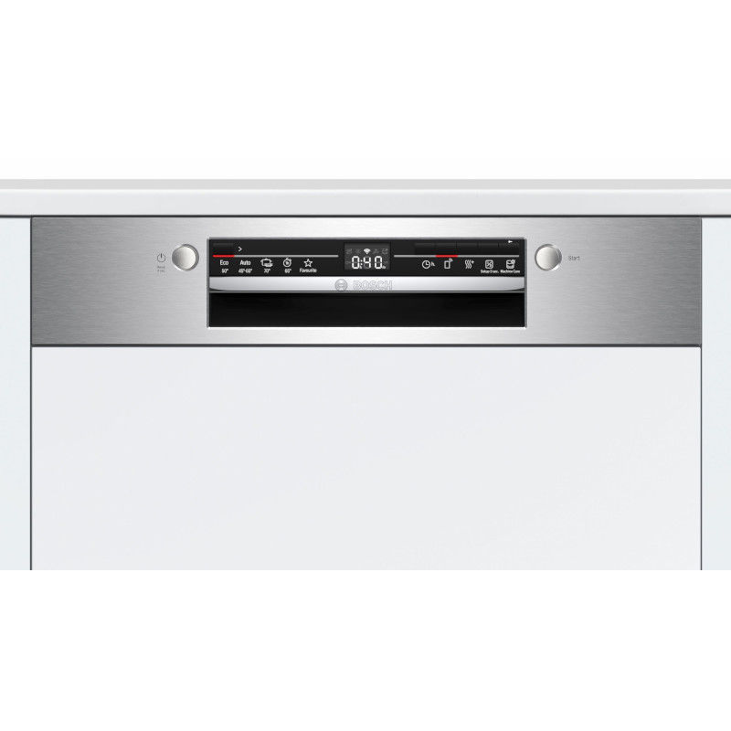 Bosch ugradbena perilica posuđa širine 60 cm. Perilica ima kapacitet pranja za 12 setova posuđa. Energetski razred E. Povezana perilica posuđa sa smanjivanjem razine buke bilo kada putem aplikacije Home Connect, čak i za kuhinje s niskim visinama postolja i visokim ugradbenim prostorima. Opcija iznimno temeljitog sušenja za posuđe koje se teško suši. Silence on demand: do 30 min smanjenja buke u bilo kojem trenutku putem aplikacije Home Connect. Omiljena funkcija: personalizirana funkcija samo s jednim dodirom, čak i za preuzete programe. Pokaznik sa 7 segmenata: pokazuje preostalo vrijeme i uobičajene informacije, kao što je status ponovnog punjenja.