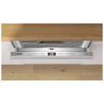 Ugradbena perilica posuđa, Serie 4, 60 cm. Kapacitet pranja: 14 kompleta posuđa. Bolja djelotvornost sušenja s povezanom perilicom posuđa za pametno daljinsko upravljanje. EfficientDry: poboljšana djelotvornost sušenja automatskim otvaranjem vrata. Košare Flex: fleksibilno i praktično rješenje za jednostavno punjenje perilice. Silence Plus: izvanredno tiha perilica posuđa s 42 dB. Home Connect: kućanski aparati s pametnim povezivanjem za ugodniju svakodnevicu. Brojač tableta vam omogućuje da pratite preostale tablete u perilici posuđa i obavještava vas kada se ponestane. Energetski razred: B.