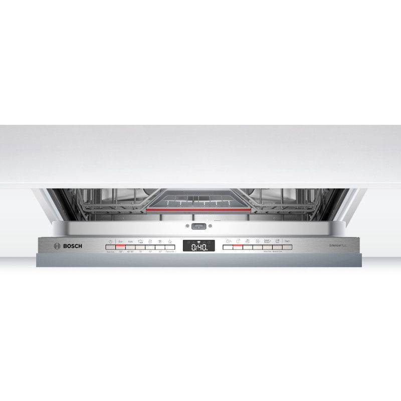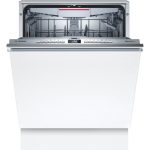 Bosch potpuno ugradbena perilica posuđa, 60 cm. Perilica ima kapacitet pranja za 13 servisa. Bolja djelotvornost sušenja s povezanom perilicom posuđa za pametno daljinsko upravljanje. EfficientDry: poboljšana djelotvornost sušenja automatskim otvaranjem vrata. Košare Flex: fleksibilno i praktično rješenje za jednostavno punjenje perilice. Silence Plus: izvanredno tiha perilica posuđa od 44 dB. Home Connect: kućanski aparati s pametnim povezivanjem za ugodniju svakodnevicu. Brojač tableta vam omogućuje da pratite preostale tablete u perilici posuđa i obavještava vas kada ponestane. Energetski razred: D.
