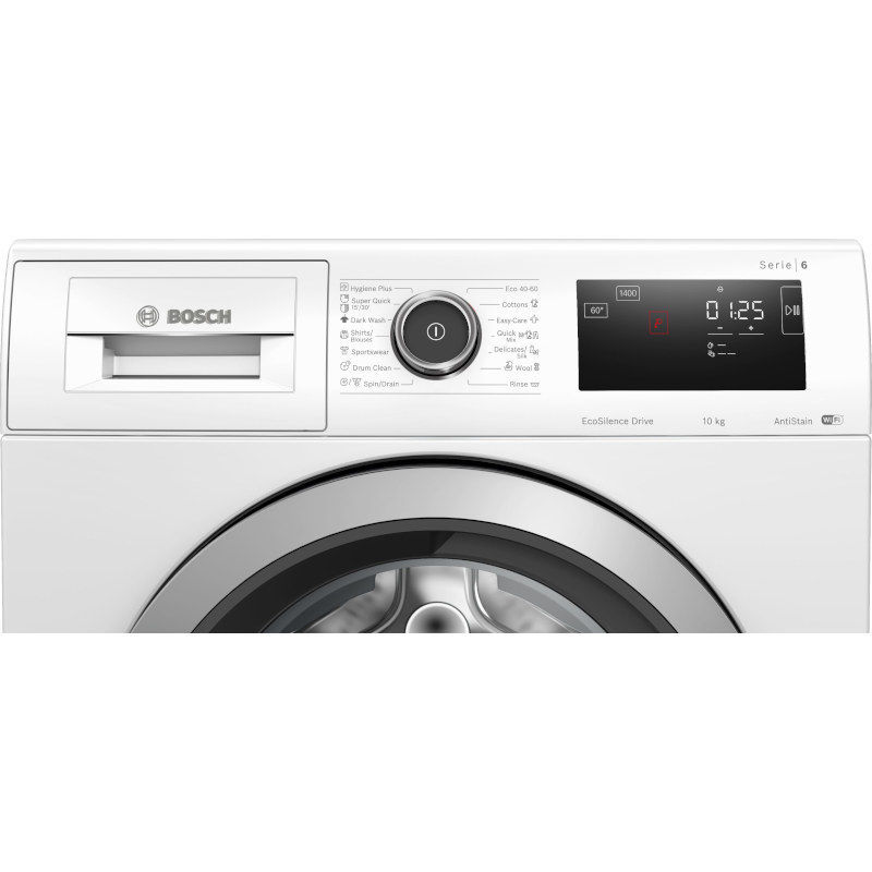 Perilica rublja Serije|6 sa sustavom AntiStain i s Home Connect pouzdano uklanja najčešće mrlje bez poteškoća i bez prethodne obrade. Kapacitet pranja: 10 kg, br. okretaja: 1400 o/min. Dimenzije (VxŠxD): 84,8×59,8×59 cm. Energetski razred: A.