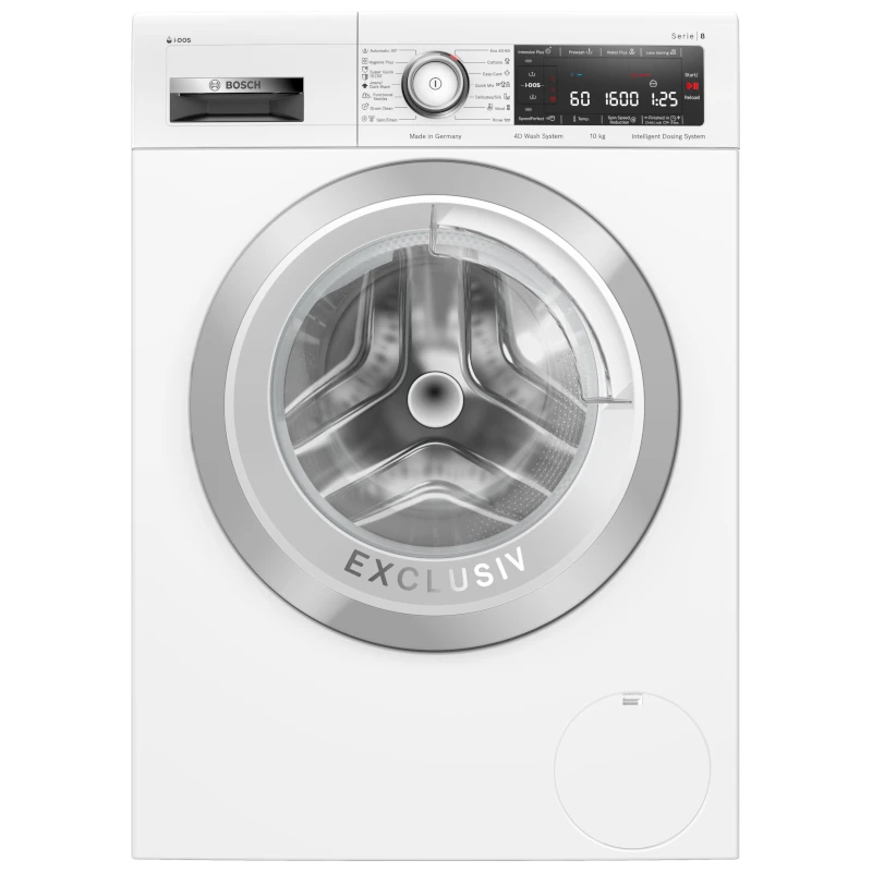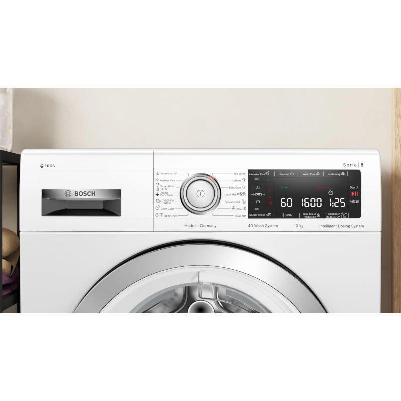 Perilica rublja i-DOS Serije|8 s 4D sustavom pranja s programom Intensive Plus osigurava besprijekorne rezultate pranja kod svakog punjenja potpuno automatski. Kapacitet: 10 kg, broj okretaja: 1600 o/min. Razina buke: 72 dB(A). AquaStop – zaštita od propuštanja vode. Dimenzije (VxŠxD): 84,8 x 59,8 x 59 cm. Energetski razred: B.