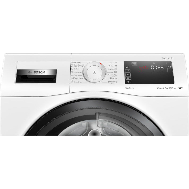 Perilica za pranje i sušenje rublja s Hybrid FlexAir sustavom: postanite još učinkovitiji i uživajte u preciznim rezultatima pranja i sušenja za sve vrste tekstila. Kapacitet pranja: 10 kg, kapacitet sušenja: 6 kg, broj okretaja: 1400 o/min. Dimenzije (VxŠxD): 84,8×59,8×61,6 cm. Energetski razred: D-A.