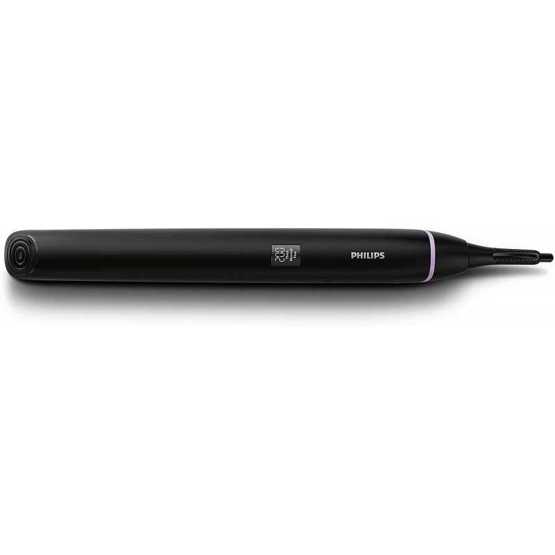 Opis proizvoda Istaknite svoju kosu zahvaljujući naprednoj njezi Lako savršeno izravnajte kosu pomoću našeg novog aparata za ravnanje kose. Regeneracija ionima i ploče s keramičkom oblogom zaštitit će kosu, spriječiti statički elektricitet i osigurati sjaj. Visoka temperatura od 220 °C omogućava postizanje predivnih rezultata u jednom potezu! Tehničke specifikacije Tehničke specifikacije Duljina kabela : 1,8 m Vrijeme zagrijavanja : 30 s Vrsta grijača Grijač odličnih radnih značajki Maksimalna temperature ; 220 °C Veličina ploče : 25 x 105 mm Napon : 110 – 240 V Automatsko isključivanje : Nakon sat vremena Keramički premaz : Da Petlja za vješanje : Da Savitljivi kabel : Da Tehnologija za njegu kose Njega ionima : Da