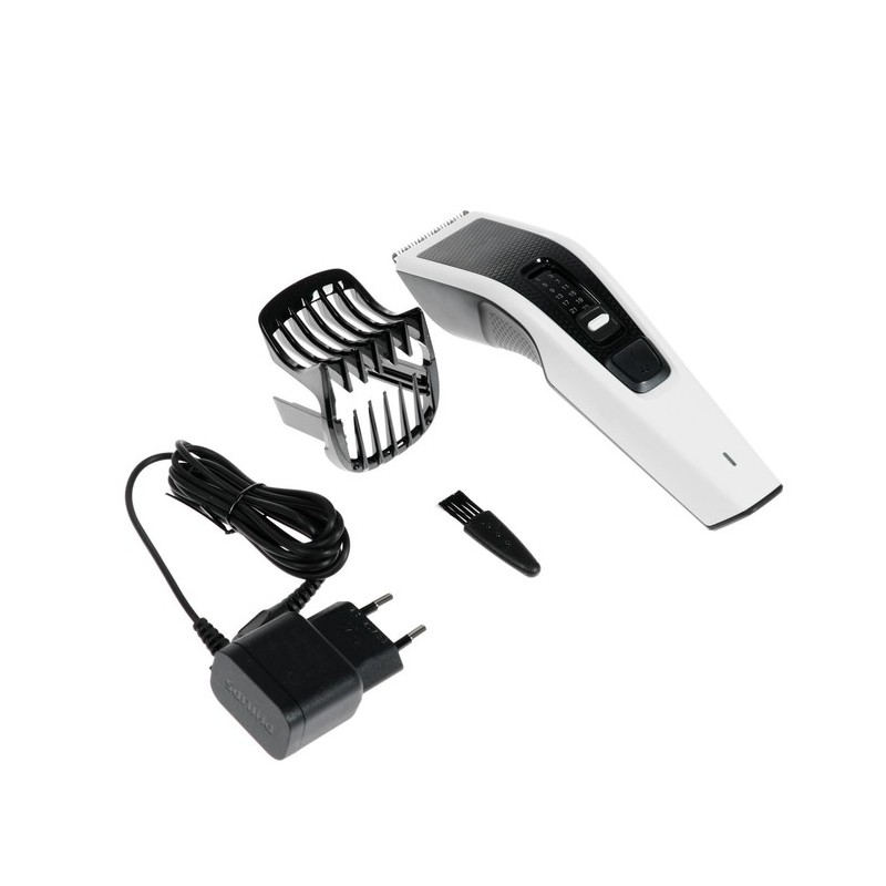 Opis proizvoda   Brzo i neprekidno šišanje Brzo i lako ošišajte kosu. Tehnologija DualCut s oštricama koje se same oštre omogućuje dvostruko brže šišanje*. Tehnologija Trim-n-Flow obuhvaća češalj dizajniran kako bi spriječio začepljenje pa ćete oblikovanje završiti u jednom potezu.   Brže šišanje bez začepljenja Oštrice od nehrđajućeg čelika 13 postavki duljine 75 min bežične uporabe/8 h punjenja Priložen je češalj za bradu