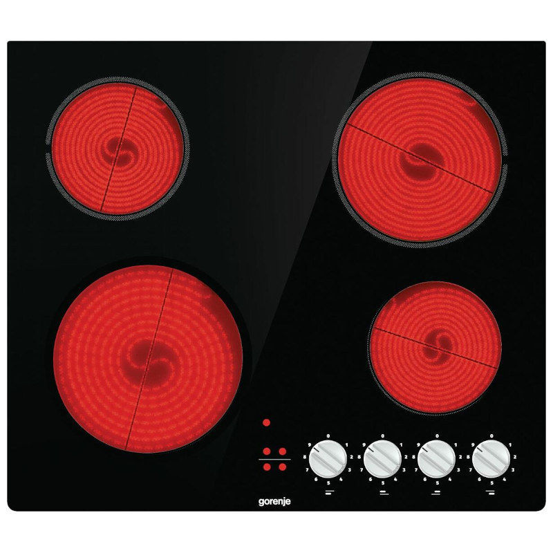 Gorenje staklokeramička ugradbena ploča za kuhanje, širina: 60 cm. 4 električne zone za kuhanje. Pokazivači preostale topline (H) – vode brigu za još veću sigurnost jer svjetlima upozoravaju da su određena polja za kuhanje još uvijek topla. Dok svijetle svjetla, ta se polja ne smiju dodirivati. Možete ih upotrijebiti za topljenje ili održavanje temperature jela.