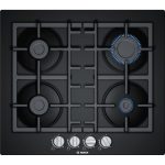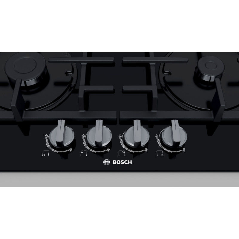 Bosch plinska ploča za kuhanje. Broj plinskih plamenika: 4 (1 snažni, 2 obična, 1 štedljivi plamenik). Širina: 60 cm, crna. Plinska ploča za kuhanje od kaljenog stakla: nudi vam profinjen izgled i jednostavno čišćenje. Ergonomski gumbi: za ergonomsko upravljanje.