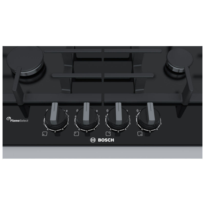 Bosch plinska ploča za kuhanje širina: 60 cm, crna boja. Ploča za kuhanje od kaljenog stakla s funkcijom FlameSelect za postizanje savršenih rezultata kuhanja zahvaljujući devet precizno definiranih razina snage.